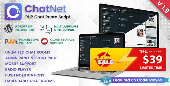 ChatNet 1.9 PHP Chat Room & Private Chat Script CMS PHP Script With Lifetime Update.