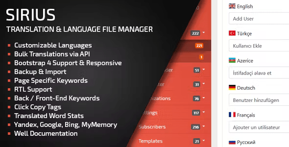 While language keys are typically stored in the database, Sirius seamlessly integrates them with local PHP variables. After making modifications, database records can be synchronized with language files effortlessly.