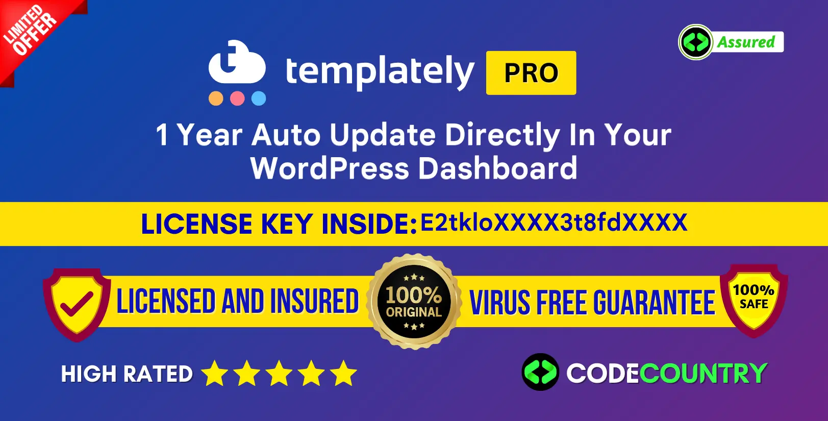 Templately Pro Plugin With Original License Key For 1 Year Update Directly In Your WordPress Dashboard.